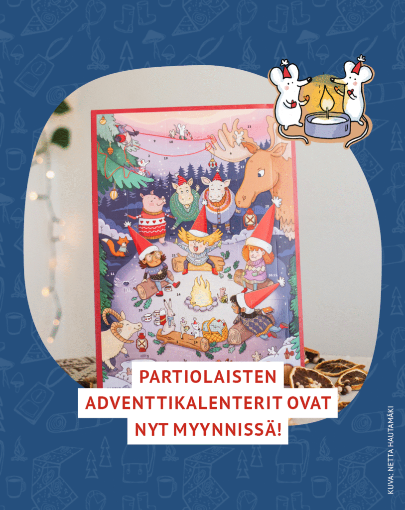 Partiolaisten adventtikalenterit ovat taas myynnissä. Ostamalla kalenterin tuet partiotoimintaa. Omasi voit ostaa täältä: https://www.adventtikalenteri.fi/ tai lähimmältä partiolaiseltasi.